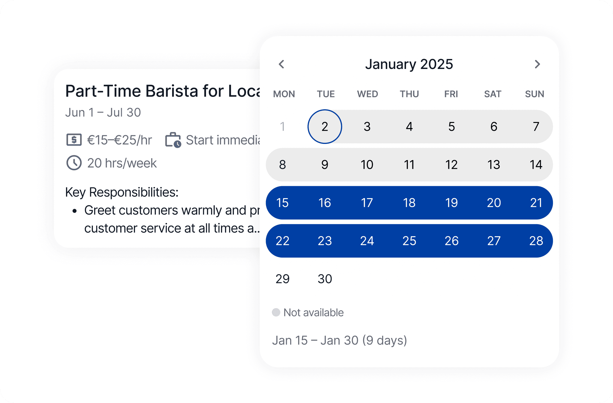Explore available temporary and seasonal job slots by date, location and role. Use smart filters to quickly find opportunities that match your schedule and preferences.