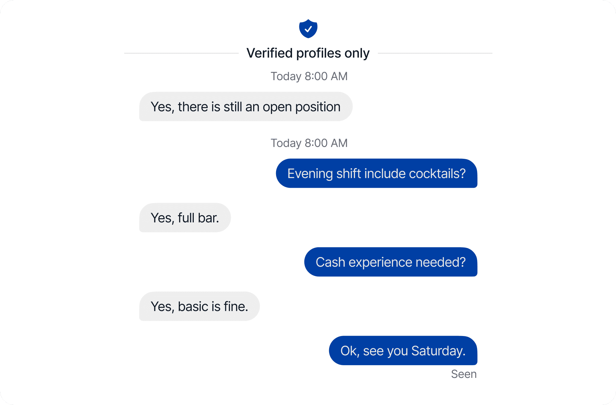 Post a shift and fill it fast with instant bookings. Only eligible workers can book, so there’s no back-and-forth or no-shows. Track everything easily with clear reports and reach candidates beyond your city using the built-in chat with real-time translation.