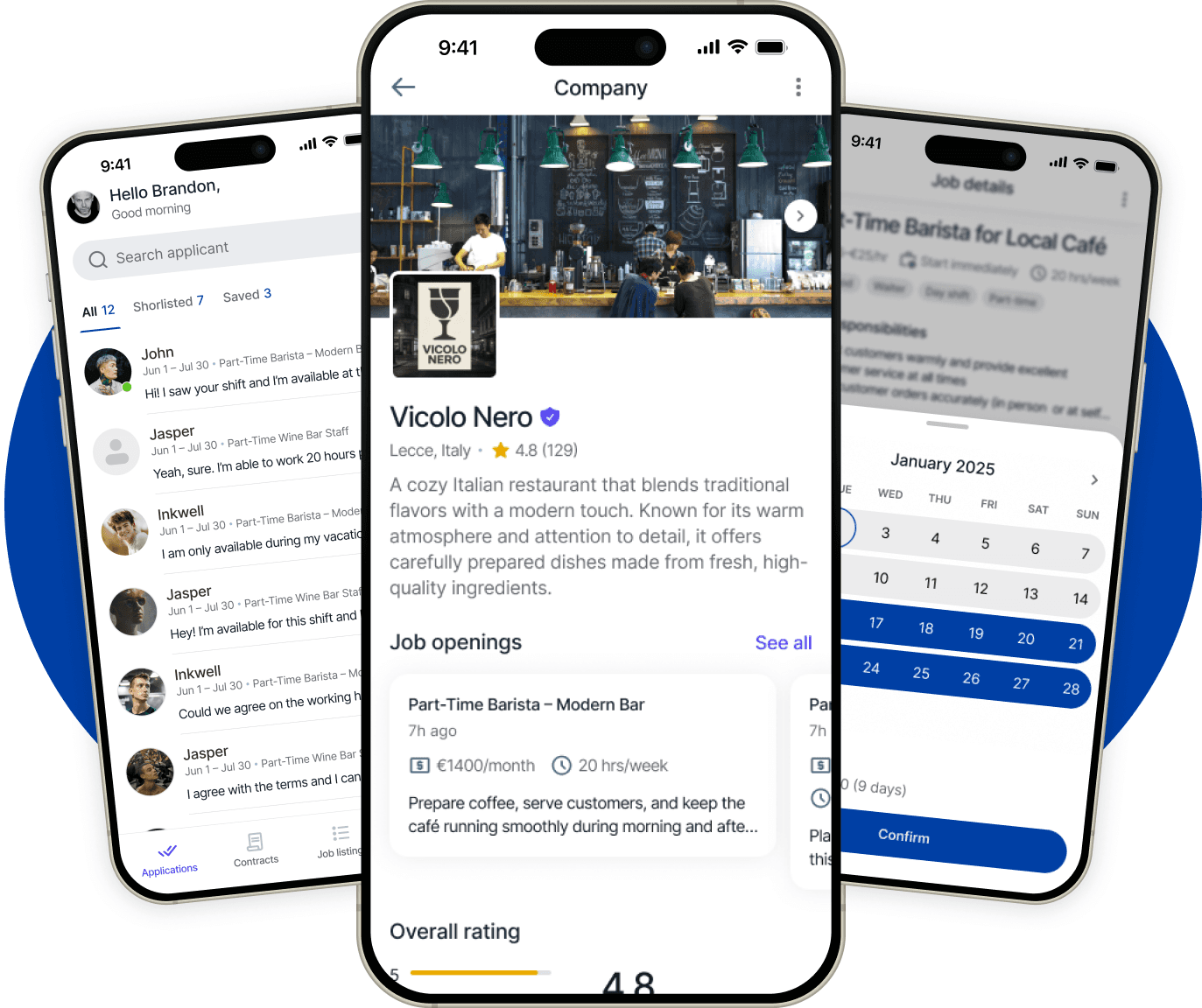 Choose the slot that works for you and confirm it in one tap. No applications, no waiting — your job is instantly booked.